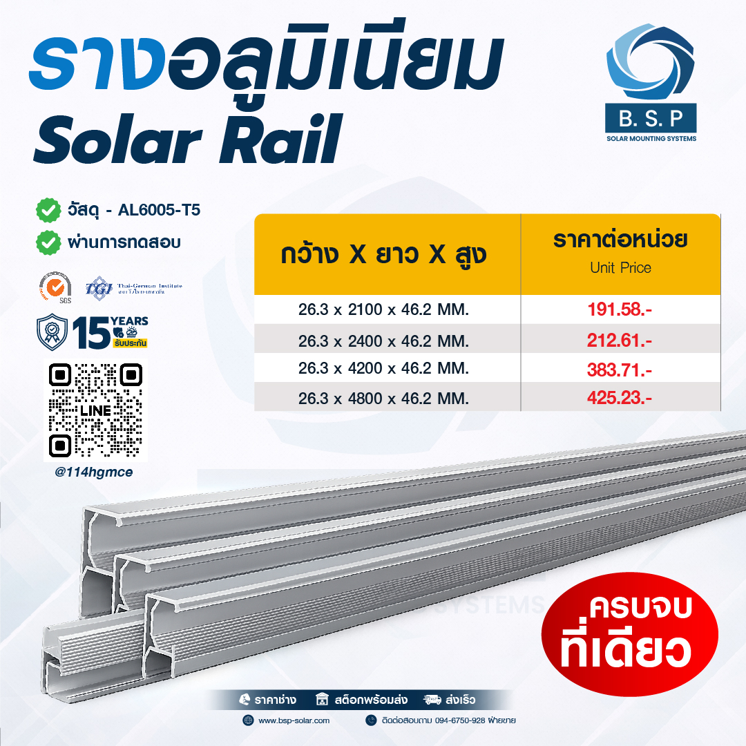 ออกแบบหน้าตัดให้รับแรงลมและแรงกดจากแผงได้ดี เหมาะกับสภาพอากาศประเทศไทย รองรับงานติดตั้งบนหลังคาเมทัลชีทและโครงสร้างเหล็ก